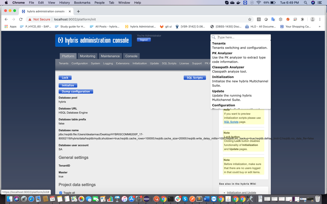If its new installation (installing Hybris for the first time) just go to Browser and type URL {https://localhost:9002/} login with credentials admin/nimda. Go under Platform tab > Initialisation and press button Initialize and then perform the next step as well. If already initialised once jump to next step directly.
