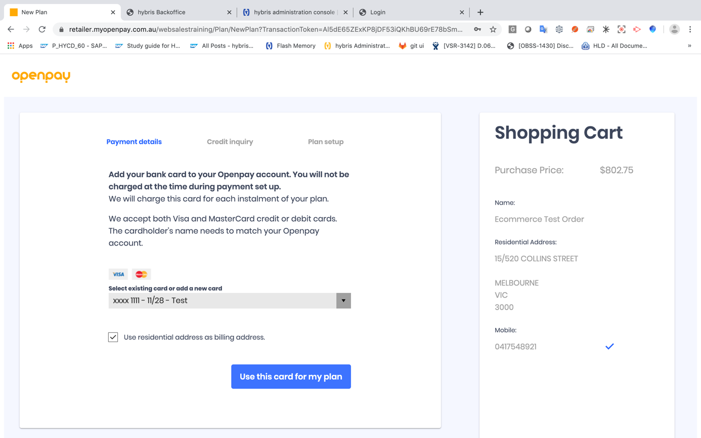 After login to Openpay perform further steps to submit the plan by giving card details and choosing the plan.