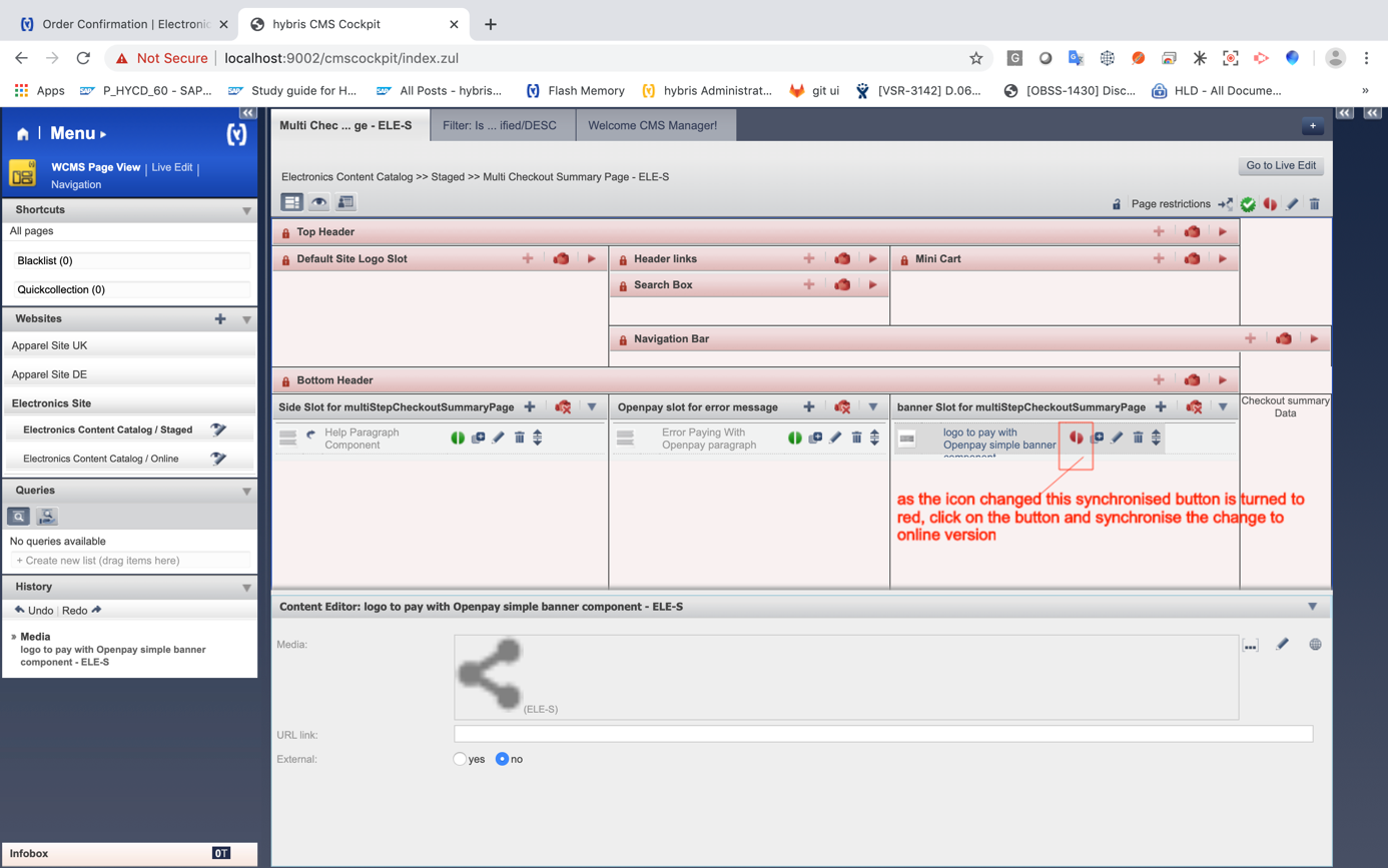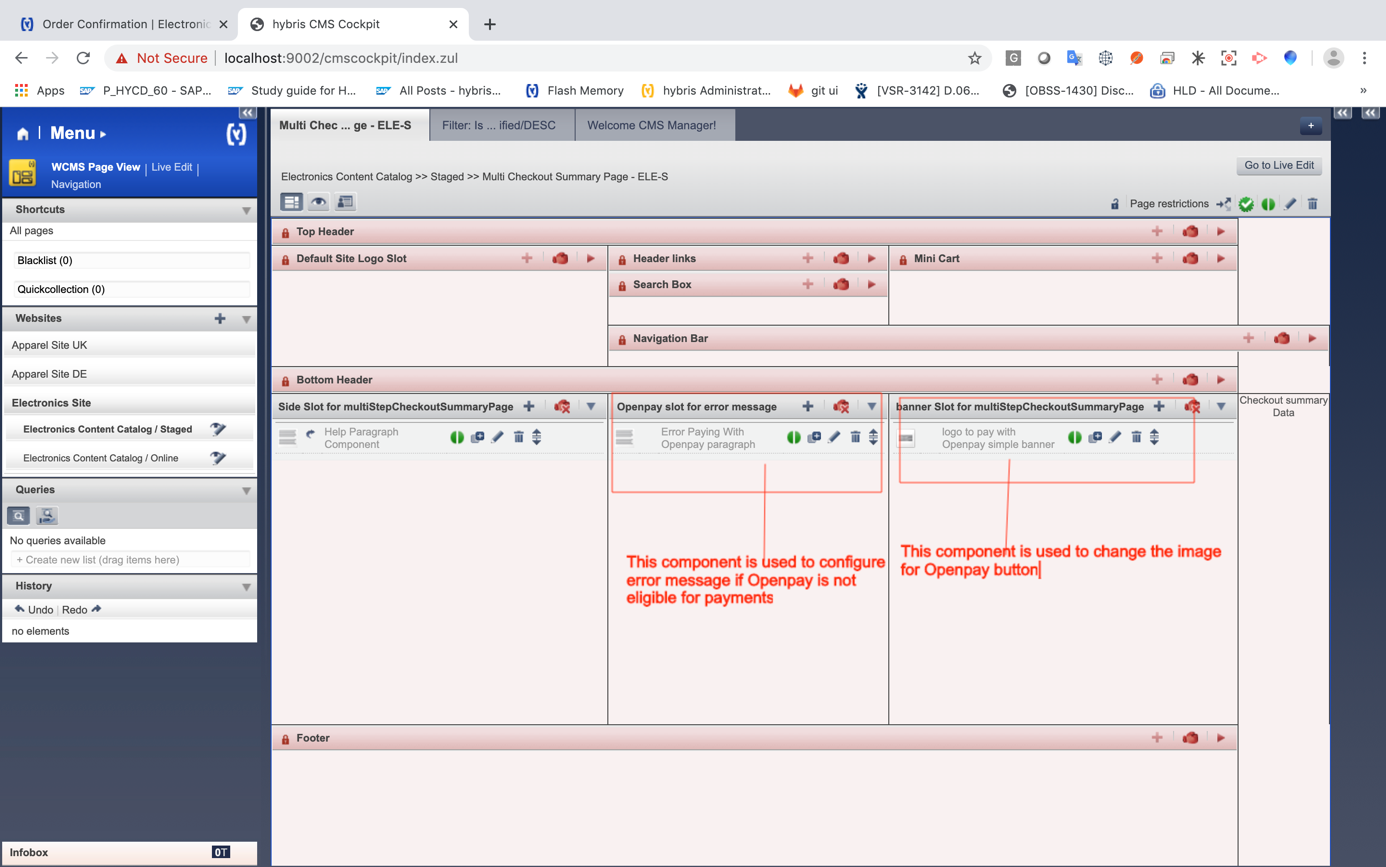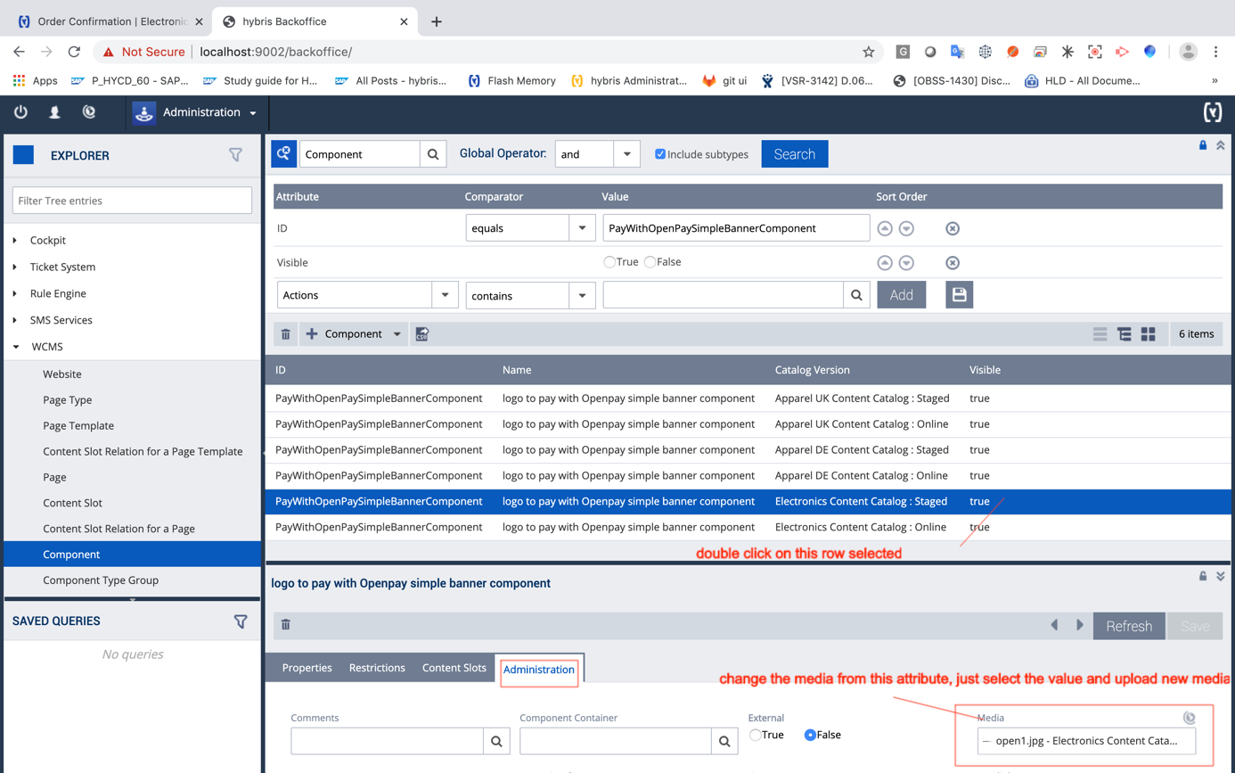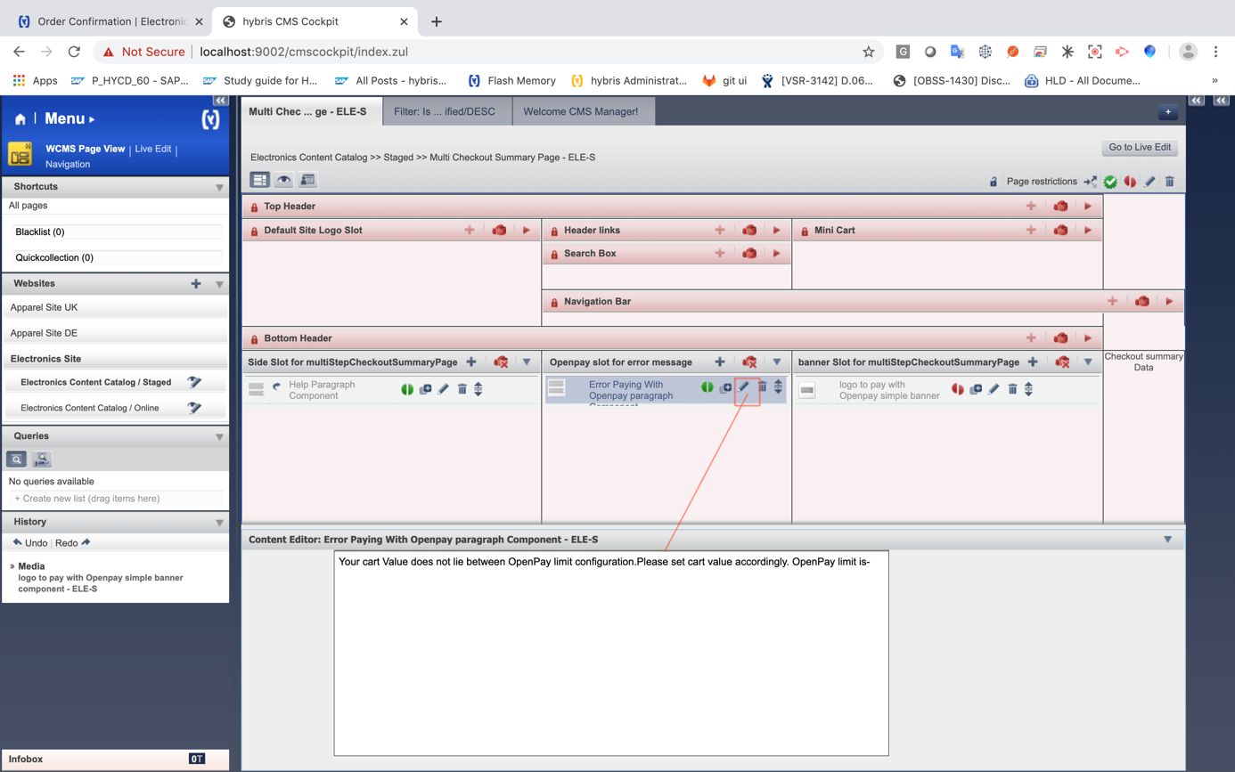 For newer Hybris versions Hybris CMSCockpit might not be available for components configured like Openpay payment logo, error message. This can be configured from backoffice as well.