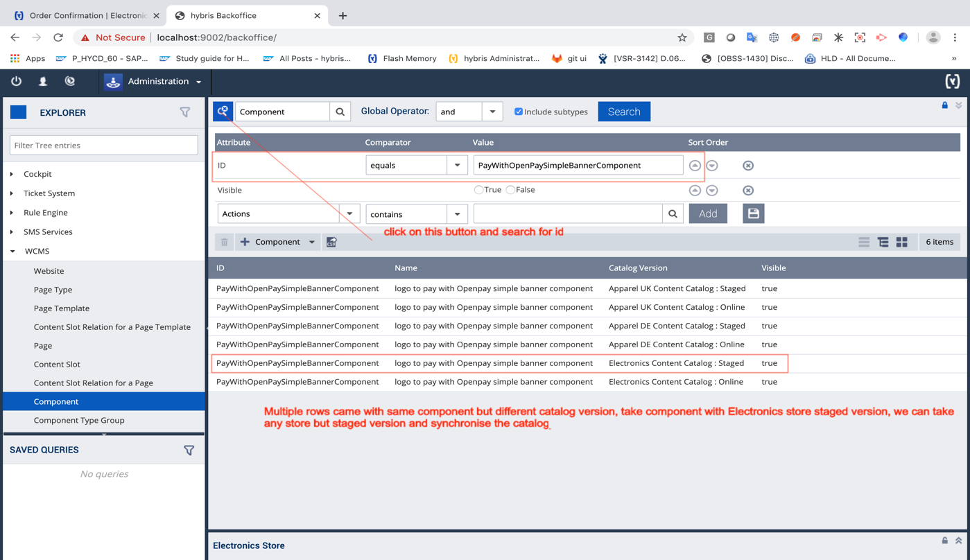 We have created components by id ErrorPayingWithOpenPayParagraphComponent and PayWithOpenPaySimpleBannerComponent. Search these components in search box