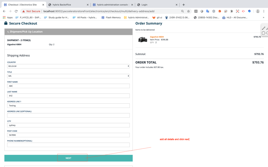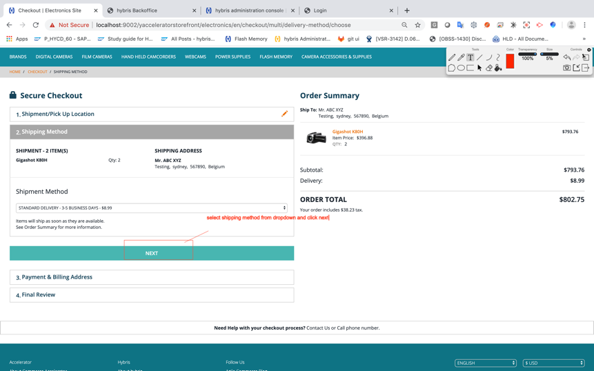 Create a new user or login or checkout as guest login from checkout page. For testing use email ecommerce@xx.yy