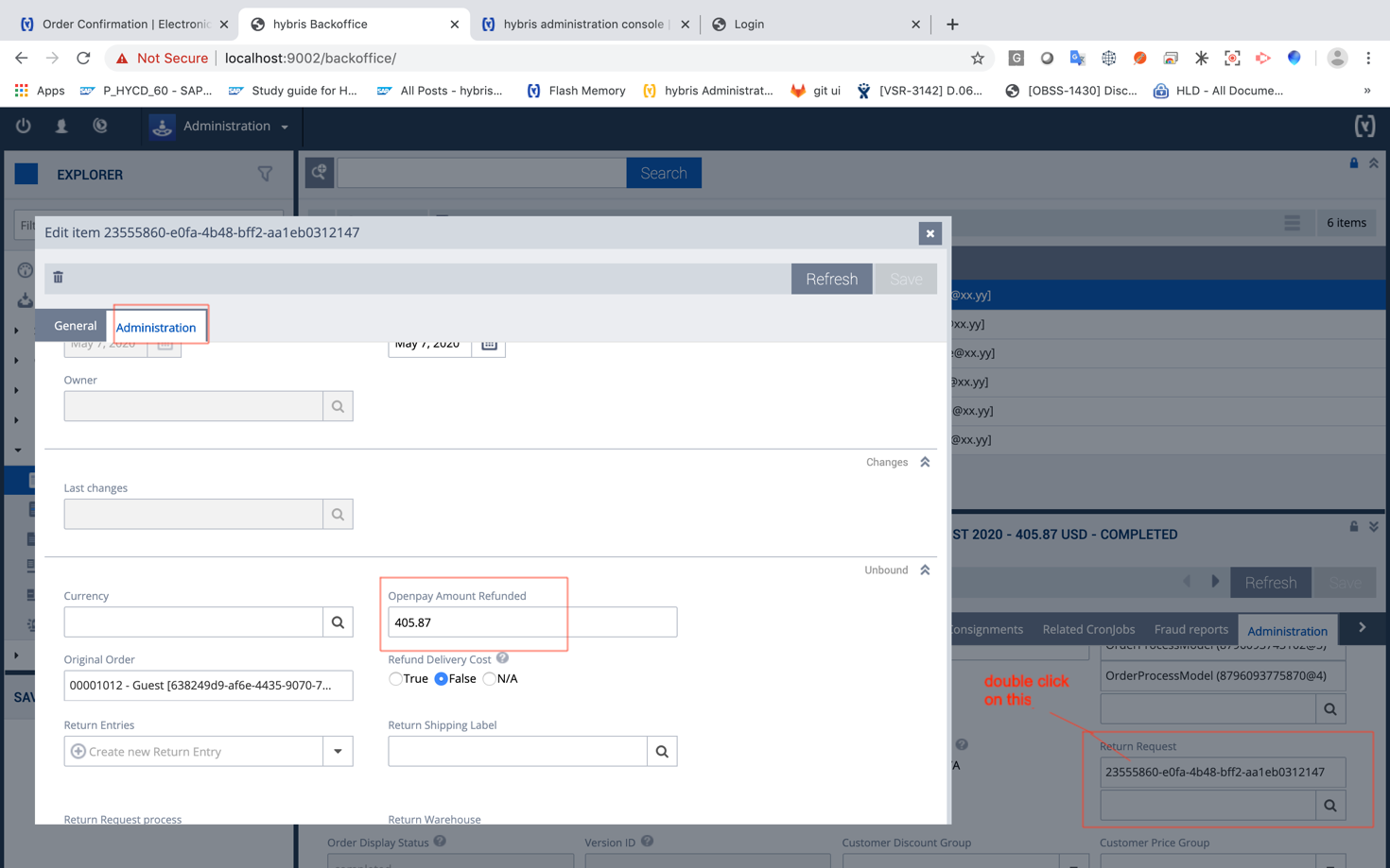 NOTE : If Hybris return functionality is used OOTB please replace {Hybris_Dir}/hybris/config/customize/ OOTB_REFUNDS/ CaptureRefundAction.java with OOTB refund action class in fulfilmentprocess or ordermanagement extension for using OOTB returns for Openpay as well. Second add dependency of openpayintegration to your fulfilmentprocess or ordermanagement extension.