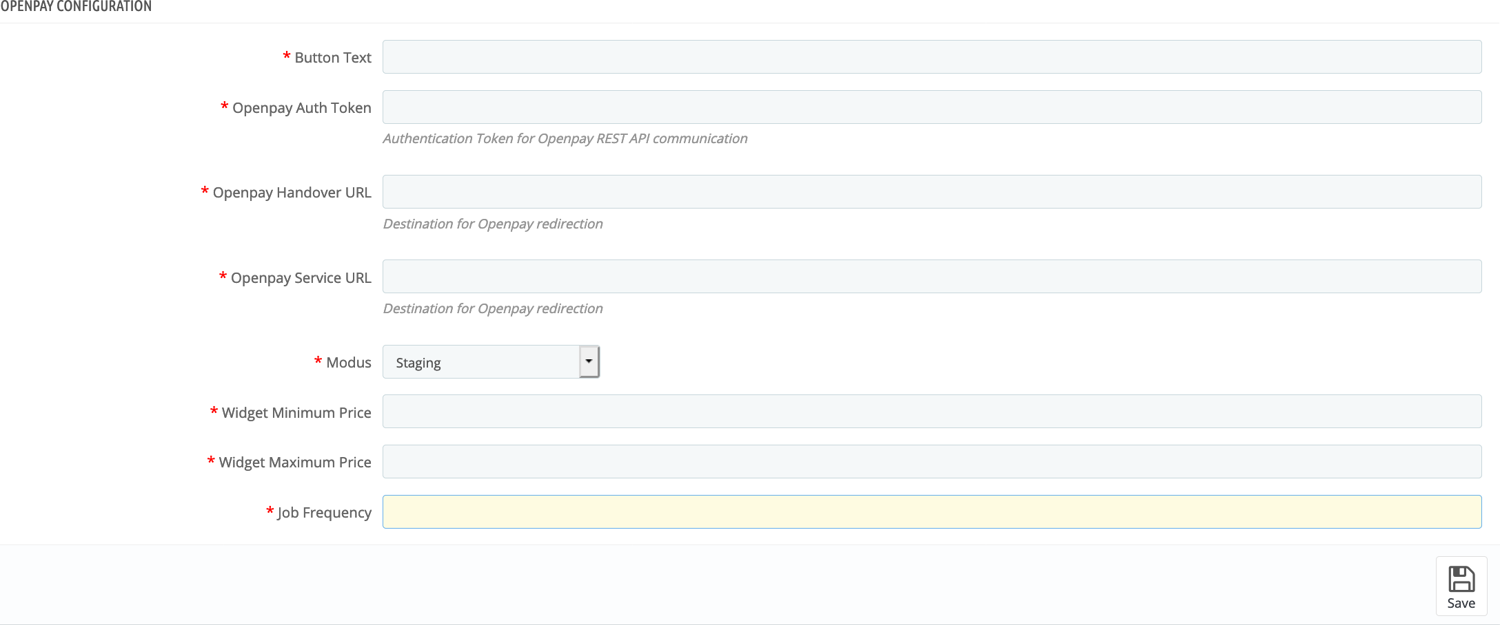 For the Openpay integration to work, the following needs to be configured in the Backoffice.