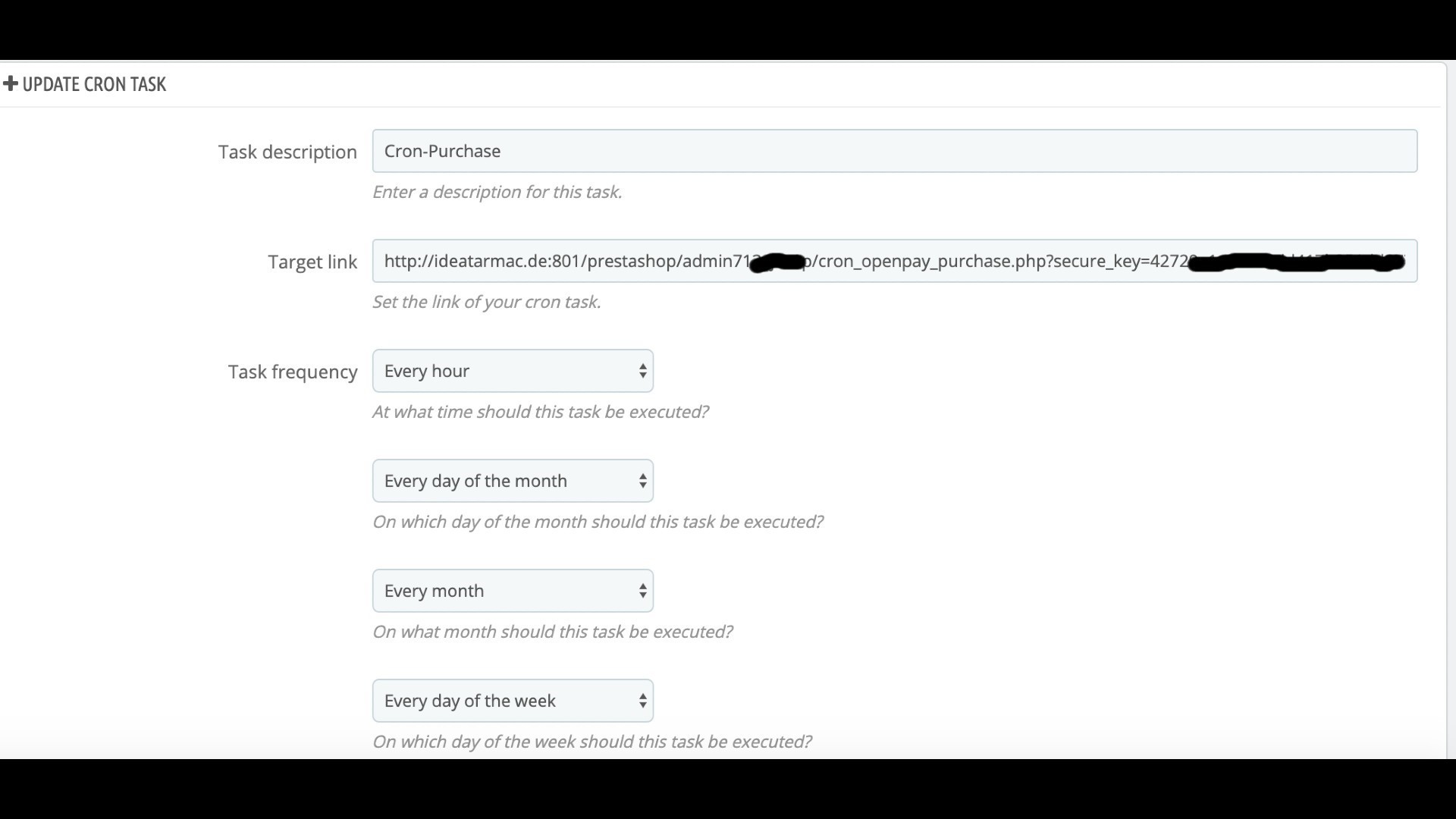 The link from cron_openpay_purchase.php file must be inserted there and the key should be used, which is created there.