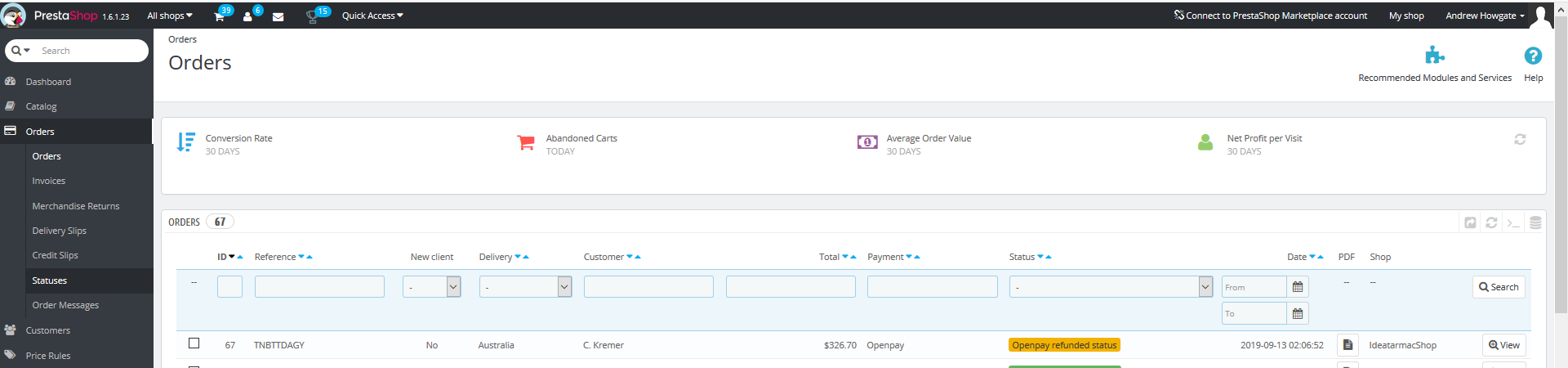 Customer completes the Openpay form and will be redirected to PrestaShop. If all is fine then the response status is LODGED, order will be placed with order status.
