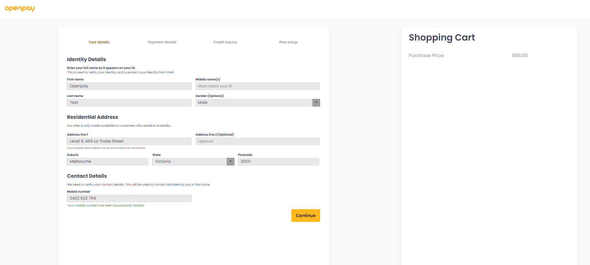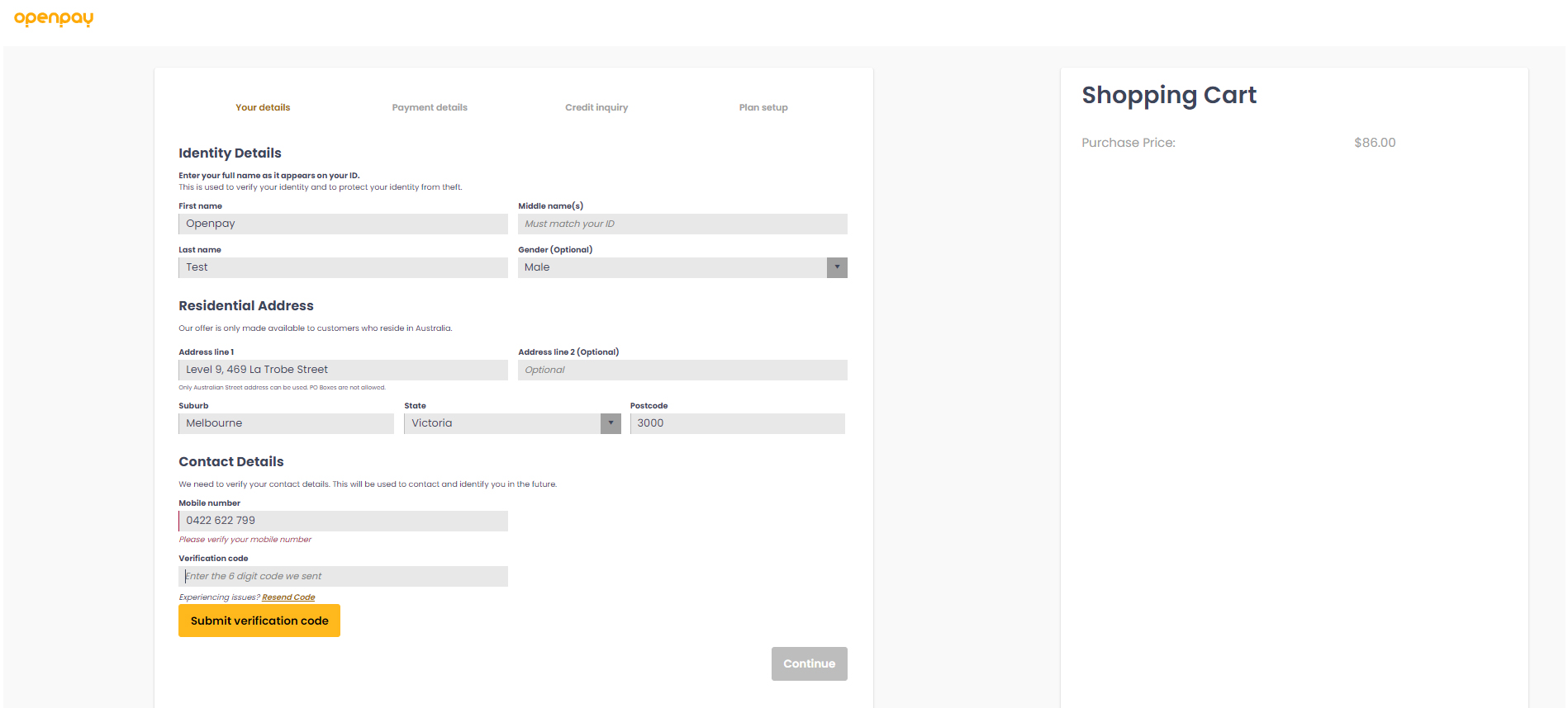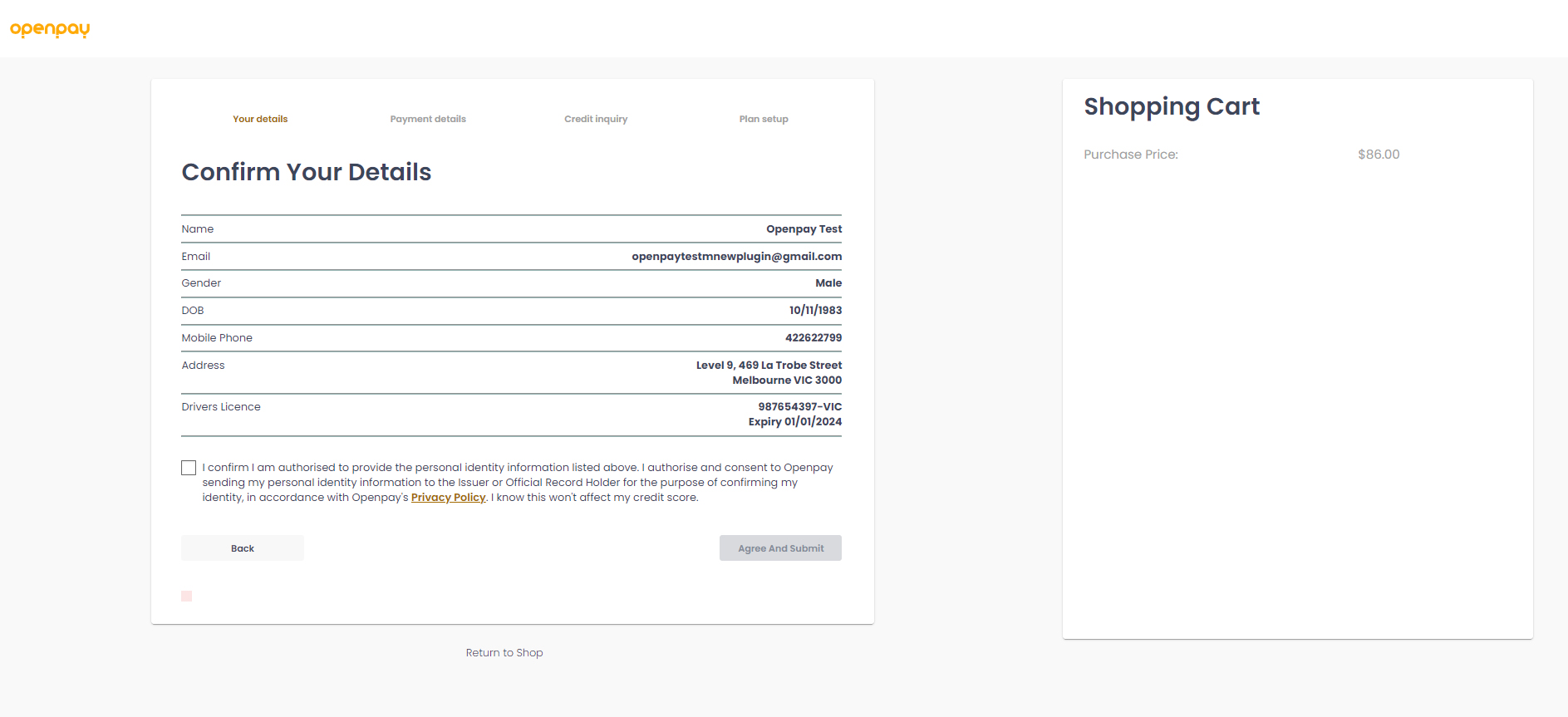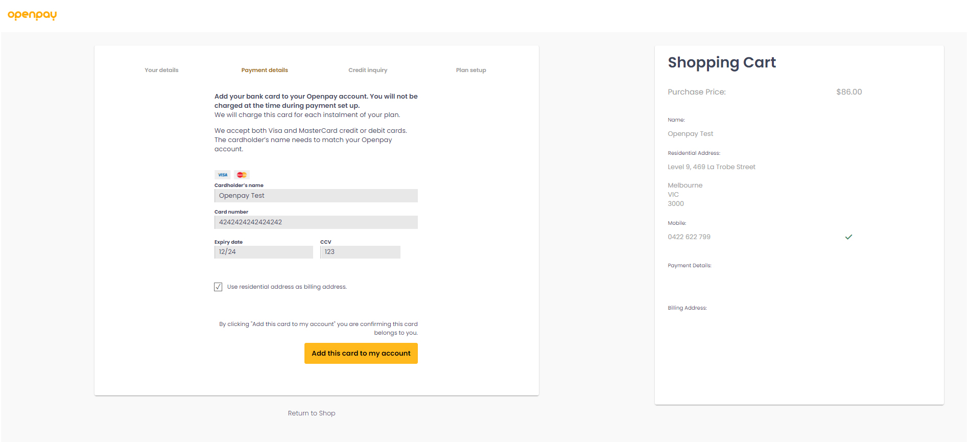 Please note: Openpay does not provide LIVE / Production test credentials. Our team is happy to test and certify your LIVE / Production site.