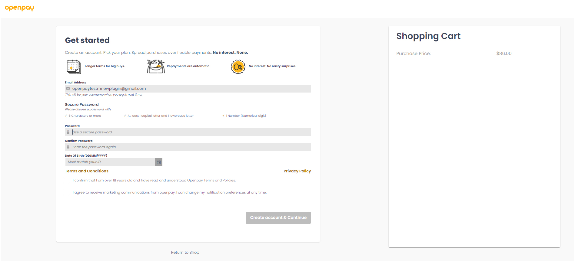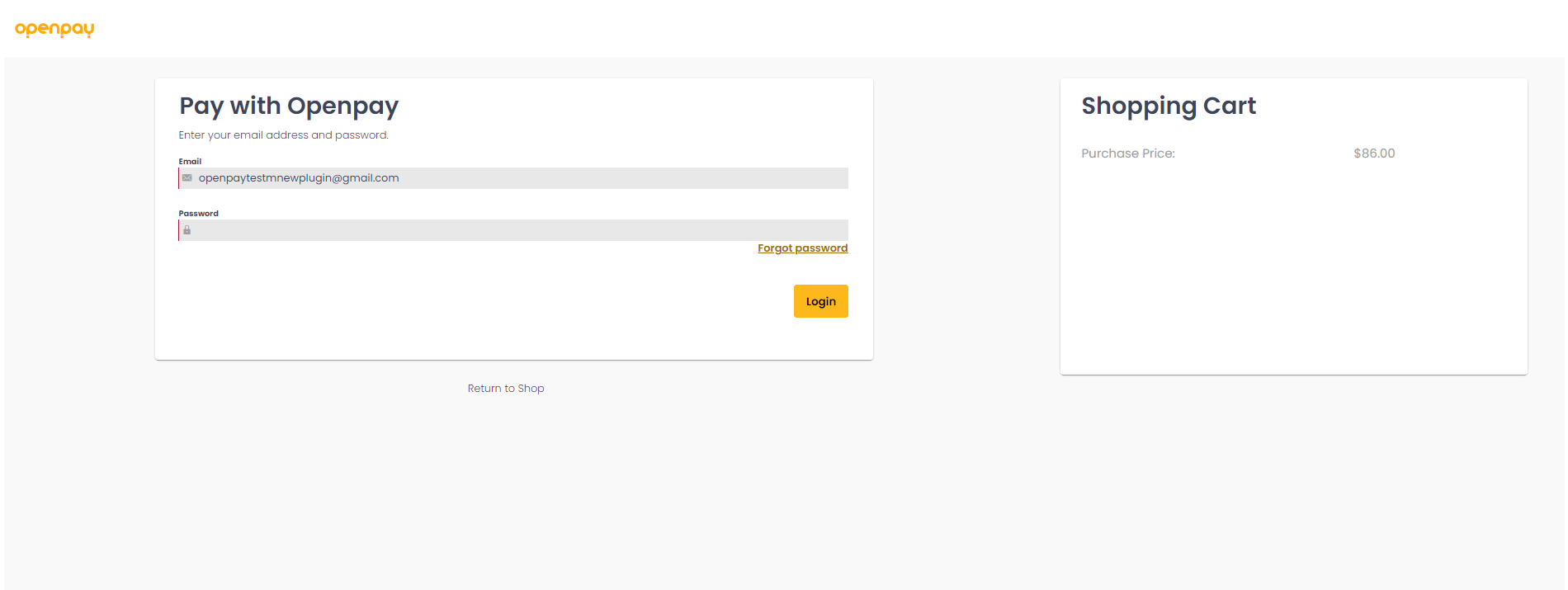 If the customer is already registered with Openpay, the following screen will be displayed: