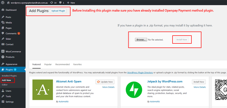 You should have an existing WordPress website to install the Openpay Widget plugin.
