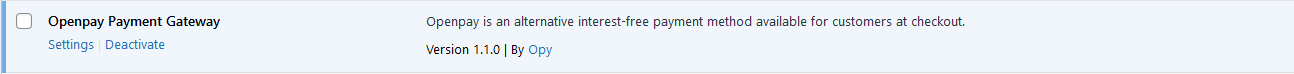 Navigate to Dashboard > Plugins > Openpay Payment Method for WooCommerce > Deactivate